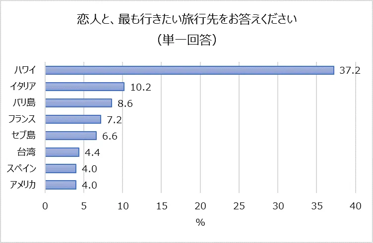 ■恋人 1位:ハワイ(37.2%) イタリア(10.2%) バリ島(8.6%)