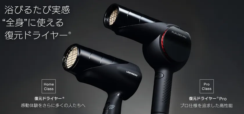 化粧品製造販売事業や健康美容食品・美容器具等の企画・開発・販売事業を手掛ける株式会社LOUVREDO(読み:ルーヴルドー、本社:大阪府大阪市、代表取締役社長:太田 丈盛)は、2015年12月16日に発売しサロン専売品としてダイレクト流通ながらも累計販売台数40万台を突破した≪復元ドライヤー≫シリーズから、サロンワークをもっと快適にするために、プロ仕様の高性能・使いやすさを追求した『復元ドライヤーPro』を2018年12月1日に発売いたしました。