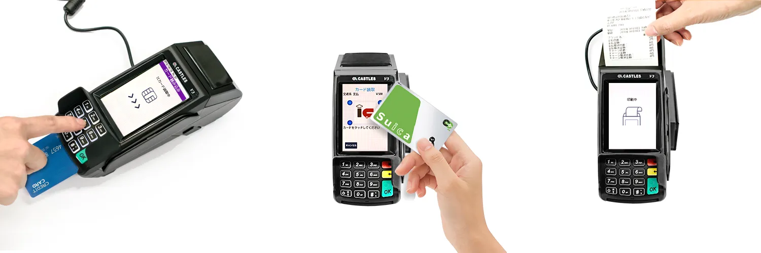 割賦販売法の施行に伴い、事業者はICカードに対応した決済端末の設置が義務づけられています。「VEGA3000」はICチップ搭載クレジットカードに対応していますので、クレジットカード番号などの不正利用防止のために必要な措置を講じることができ、安心・安全に決済できます。