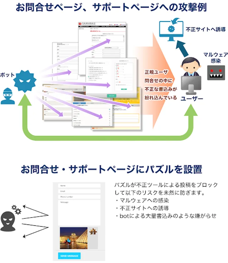 お問合せページ・サポートページへの攻撃例