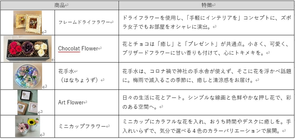 ・5チームがそれぞれ考案したバラエティーに富んだ新商品を、日比谷花壇 KITTE名古屋店で6月20日~7月3日まで限定販売。