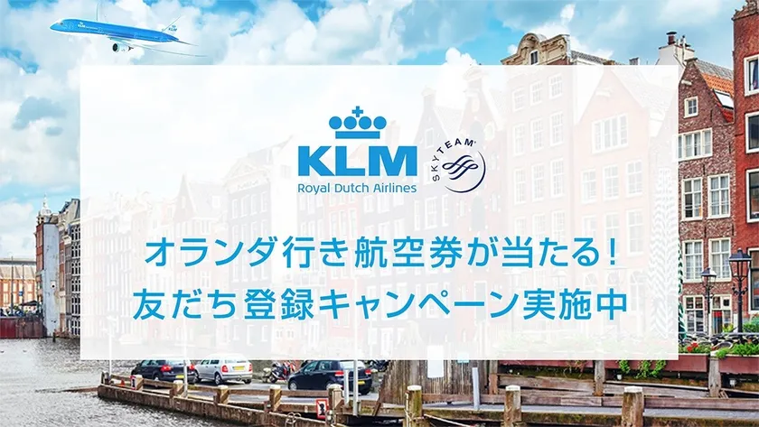 KLMオランダ航空は、お得な航空券情報、キャンペーン情報やオランダの旅行情報をどこよりもいち早くお届けするLINE公式アカウントを開設しました。開設を記念して、KLMオランダ航空のアムステルダム行き航空券が当たるキャンペーンを実施します。KLMオランダ航空の公式アカウントを友だち登録いただいた方からのご応募をお待ちしています。