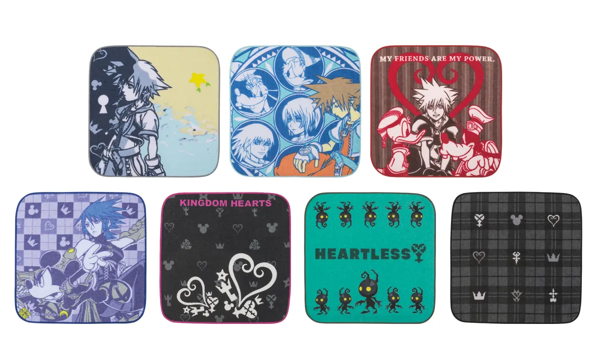 7種類から好きなデザインを選べるハンドタオルです。キャラクターやハートレス、アイコンなどさまざまなデザインです。