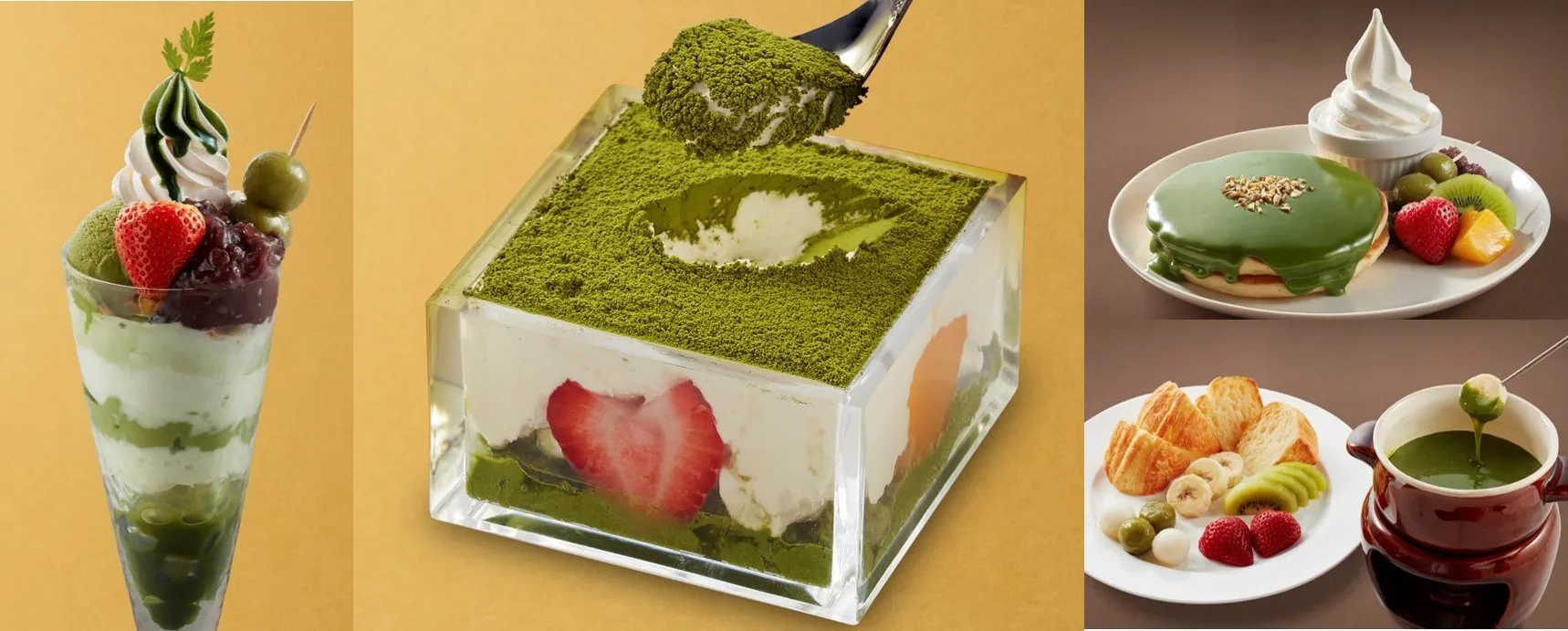 さらに今回は抹茶ババロアの上にマスカルポーネクリームをのせ、いちごやマンゴーなどのフルーツが入ったSNSで注目の升スイーツ“抹茶ティラミス”や、抹茶の濃厚な風味を味わえる温かい抹茶チョコレートソースをたっぷりかけたふわふわの“パンケーキ”などジョナサンが工夫を凝らした、甘くてちょっぴりほろ苦い本格派の和スイーツを提供いたします。