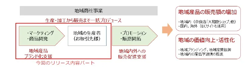 また、地域商社事業の取組みを通じて、近鉄百貨店が地域企業・行政・大学等を結びつける産官学連携のハブとなり、地域のブランド化推進・新たなビジネス創出を推進していくことを目指します。