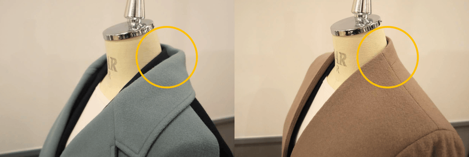 昨年よりも外出する機会が増えると予想される今冬、おしゃれをして出掛けたいというニーズに対し、上質なウール素材を採用したVカラーコートを企画しました。Vカラーコートは、襟がないデザインのため首元がすっきりとした印象で、柔らかな雰囲気を演出しながら、きちんと感と 抜け感を兼ね備えています。また、従来のカジュアルコートの場合、オーバーサイズがトレンドになっていることからも、襟が抜けるデザインが多くカジュアルな印象が強い傾向があります。今回のコートでは、コートとジャケットの後ろ襟が沿うように設計し、また胸元のラインもVゾーンが開きすぎないパターンにこだわるなど、ビジネスシーンならではの万能コートです。