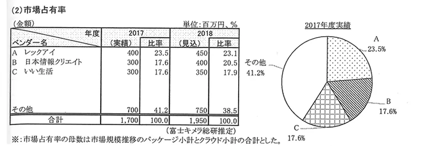 市場占有率の表と円グラフ