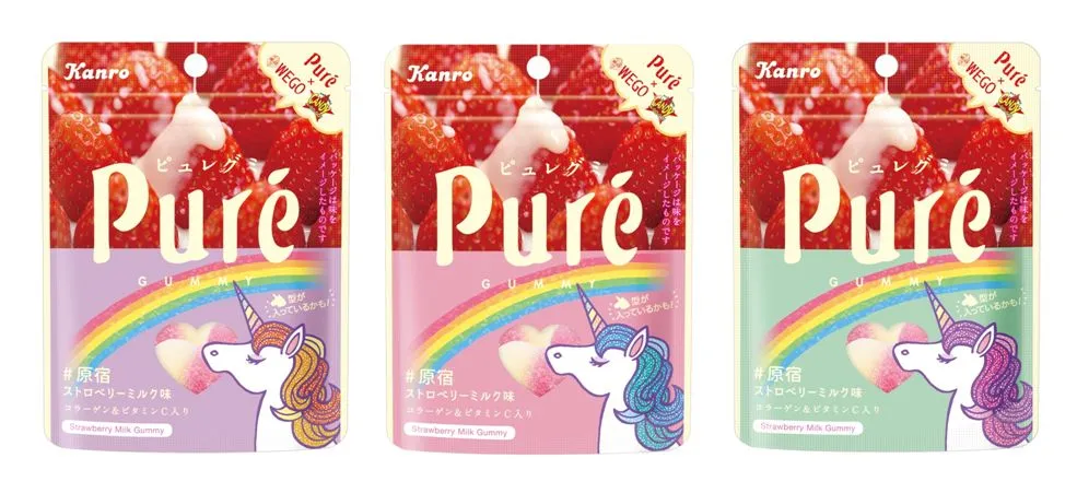 カンロ飴やピュレグミなどでおなじみのカンロ株式会社(本社:東京都新宿区、代表取締役社長:三須和泰、以下 カンロ)は、株式会社ウィゴー(本社:東京都渋谷区、代表取締役:園田恭輔 以下WEGO)と株式会社CANDY・A・GO・GO(本社:東京都渋谷区、代表取締役:落合琢 以下CAGG)の原宿の「ワカモノ文化」をけん引する代表的な2社とのコラボレーション(以下 コラボ)により開発された、『ピュレグミ ♯原宿ストロベリーミルク味』を、2018年11月19日(月)より原宿の一部店舗で先行発売、2018年11月27日(火)より全国コンビニエンスストア・駅売店で発売をいたします。