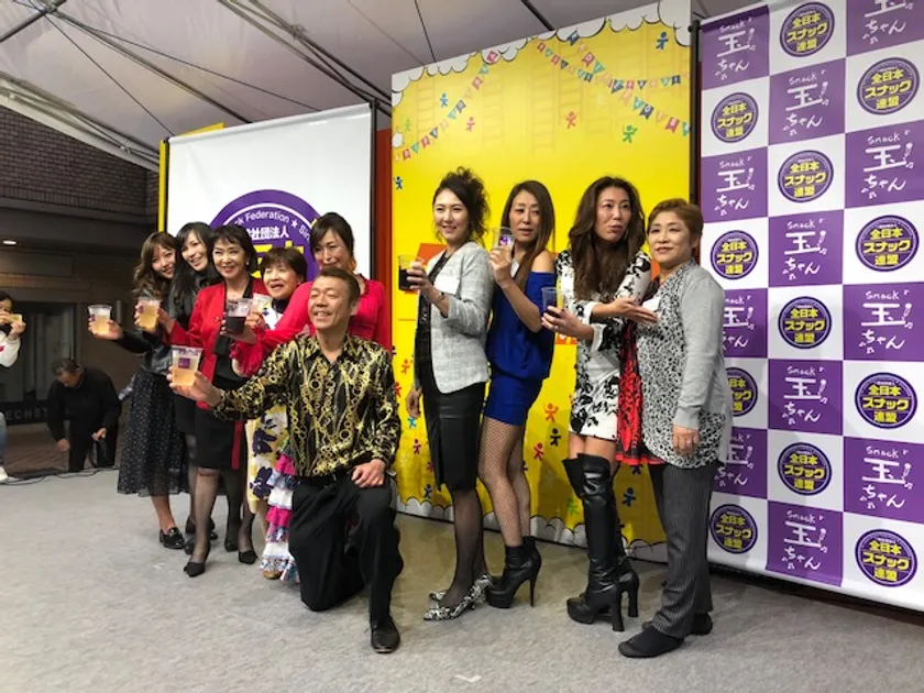 全日本スナック連盟は会長・玉袋筋太郎のもとで2014年より「スナックで日本を元気にする」を合言葉に日本中のスナックでママたちと語り、常連さんと歌いながらスナック文化の普及活動を続けてまいりました。