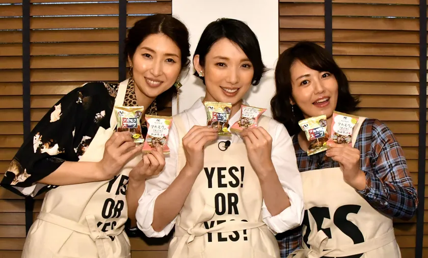 腸のスペシャリストである医師の小林暁子先生(一般社団法人日本美腸協会監修者)から、腸内環境を整えることの重要性と、“最強の美腸食”「アカモク」(善玉菌のエサになる「フコイダン」の成分量はモズクの約2倍!※)をオススメされるとさっそく、お湯をかけるだけでできあがるニコニコのりの「アカモク(ギバサ)のおみそ汁」と「アカモクスープ」を試食した。すっかり気に入った3人は商品を使った「アカモク味噌バケット」「アカモク炊き込みご飯」「白身魚アカモクあんかけ」をはじめ、さまざまな食材を使ったレシピに挑戦。アカモクレシピの試食では「めっちゃ美味しい」と感想を言い合う3人の実食は止まらない。