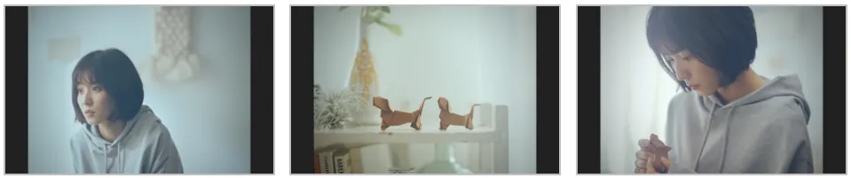 犬の折り紙を手に取り“あの頃”を思い出しますが、過去を振り切るかのように、その折り紙をゴミ箱へと放ります。