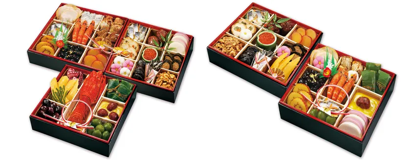 毎年、大変ご好評いただいている「くら寿司 特製おせち」が今年も登場します。今年のおせちは、薄味に仕上げることで、さらに素材本来の風味を引き立てました。「ロブスター旨煮ゼリー寄せ」(三段重限定)は、正月らしく贅沢にロブスターを一尾丸ごと盛り付け、ぷりぷりとした身を、かつおだしをきかせた和風の味付けでゼリー寄せに仕上げました。また、おせちの基本である、「味付数の子」は、歯ごたえを損なわないよう丁寧に仕上げ、プチプチとした食感がお楽しみいただけます。「丹波黒豆」は、兵庫県産の黒豆をじっくり炊き上げることで、ふっくら柔らかく、もっちりとした食感に仕上げました。全ての特製おせちは、くら寿司のこだわりである、化学調味料、人工甘味料、合成着色料、人工保存料を一切使用しない「四大添加物無添加」となります。