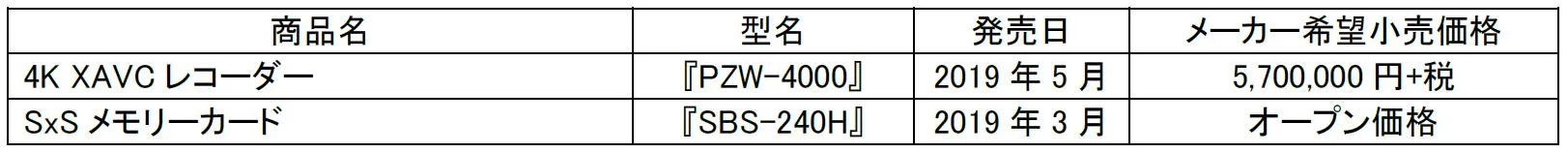 4K映像の高画質を維持しながら、従来比約1/3に圧縮可能なビデオフォーマットに対応 運用効率を大幅に改善する4K XAVCレコーダー『PZW-4000』を発売 ~4Kファイル搬入に適した本機専用メディア SxSメモリーカードも発売~