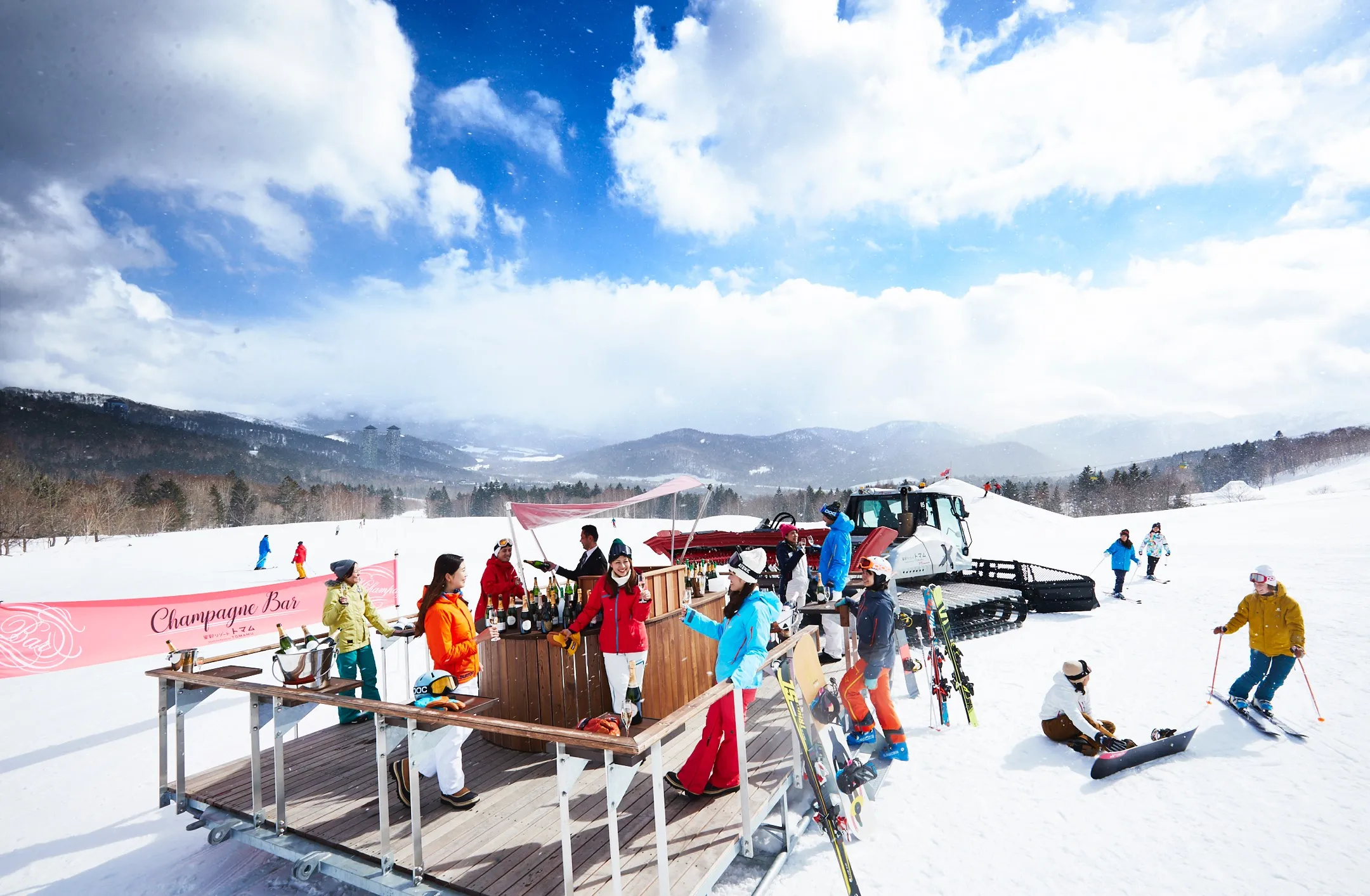 3月の晴れた日にだけ、スキーヤーで賑わうゲレンデのどこかに突如現れる屋外のバーです。バーカウンターに立ち、スーツを身にまとったバーテンダーが提供するシャンパンをスキー場で味わえるのが特徴です。普段は立ち止まることが少ないスキー場の一角に足を止めると、そこでは今まで気が付かなかった絶景を眺められたり、新しい発見ができたりするかもしれません。