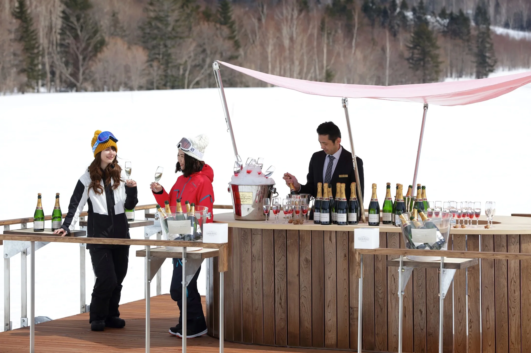 昨年は、ローランペリエと、ノンアルコールスパークリングを提供していました。スキー場でシャンパンが飲めることが好評だったことから、今年は合計20種のシャンパンを用意します。普段目にする機会が少ない希少なシャンパンを複数セレクトしました。飲んだことのないものをお客様ご自身が選んだり、バーテンダーにおすすめを聞いて試してみたり、新しい楽しみ方が加わります。