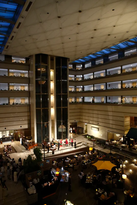 ホテルを象徴する高さ23mの吹き抜けの大空間で、ピアノやオペラ、声楽など様々な音楽をお届けします。ロビーでの鑑賞は無料。