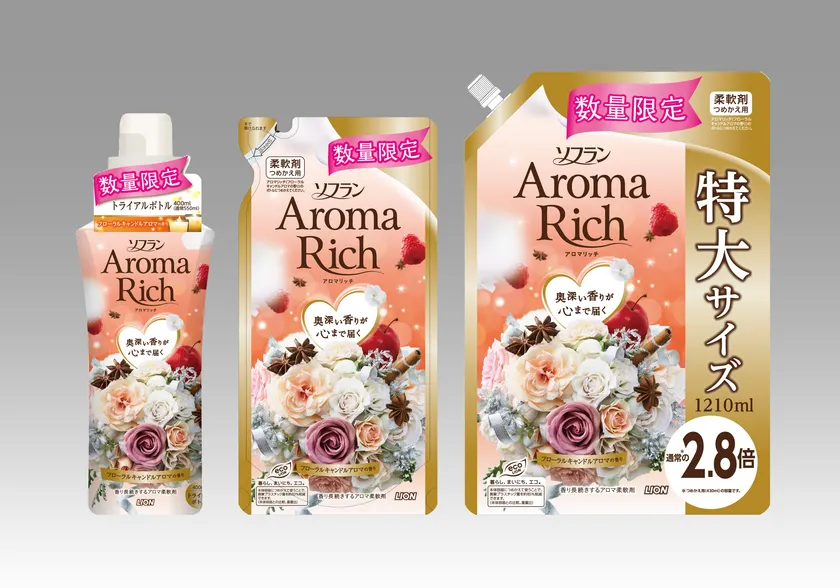 そこでこの度、『ソフラン アロマリッチ』は女性に寄り添うブランドとして、優しく心温まるイメージの『フローラルキャンドルアロマの香り』を数量限定で発売いたします。