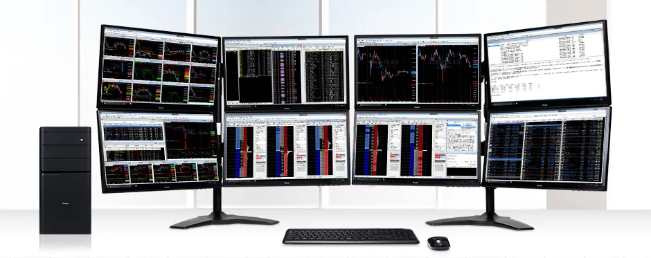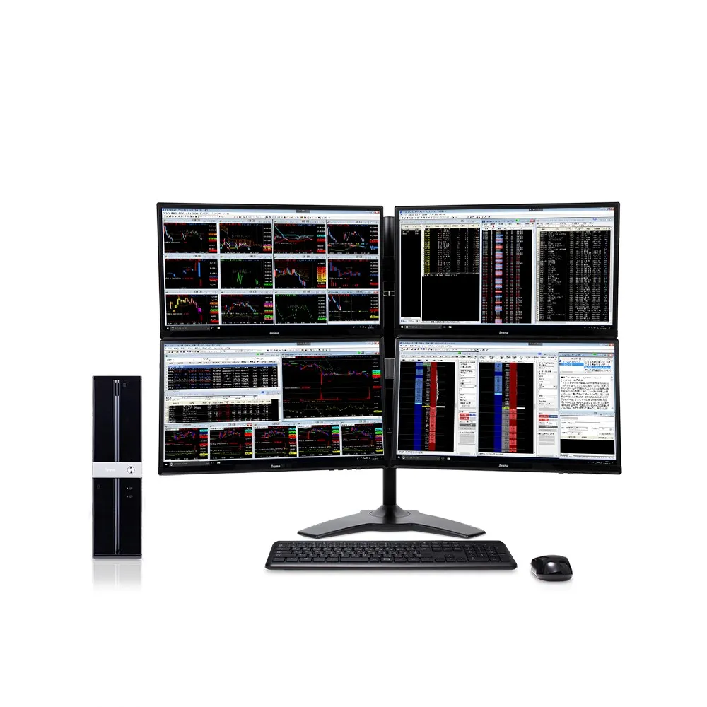 「トレステPC」シリーズは、多大な銘柄の登録や大容量データの分析、ミリ秒単位を要求されるトレードスピードや自動売買が可能なシステムトレードなどを支える、「トレードステーション(トレステ)」の持つ数々の先進機能を十分に活用できるよう、iiyamaPCで培ってきたノウハウと厳選したスペック構成で安定したシステム動作を提供し、多大な画面情報を必要とするトレーディングには欠かせないワークスペースを最大8画面までカバーするマルチディスプレイ環境で実現する、トレーダー向けのパソコンシリーズです。