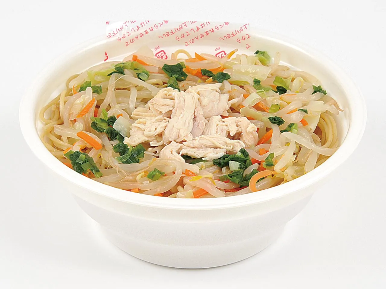 スープは、麺と相性の良い鶏白湯ベースを採用。健康を気づかう方に向け、1/3日分の野菜が取れる(※)もやしや人参・キャベツ等の野菜炒めとヘルシーな蒸し鶏をトッピングしました。