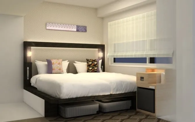 客室数全254室のうち約7割を占める15平方メートルのコンパクトなお部屋はベッド下にスーツケースを収納できるなど室内スペースを広く確保することで快適にお過ごしいただける空間に仕上げています。2階ロビーにはコインランドリー、アイロンルームを設置しており、旅の拠点として、“いつもとは違う大阪の旅”をお楽しみいただけます。