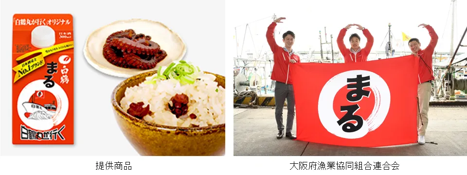 出店ブースでは魚介類と相性抜群の「白鶴 まる」と、大阪泉州のブランド「泉だこ」を使った「泉だこ旨煮」と「たこめし」を販売します。「白鶴 まる」を購入された方には、数量限定で「白鶴丸が行く」オリジナルパッケージ商品をお渡しします。是非、お立ち寄りください。