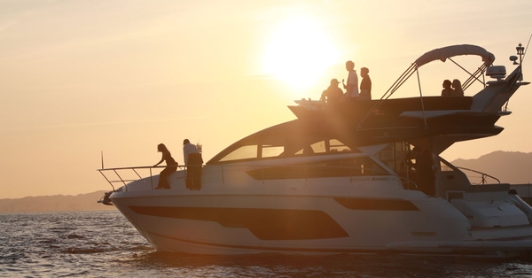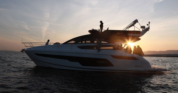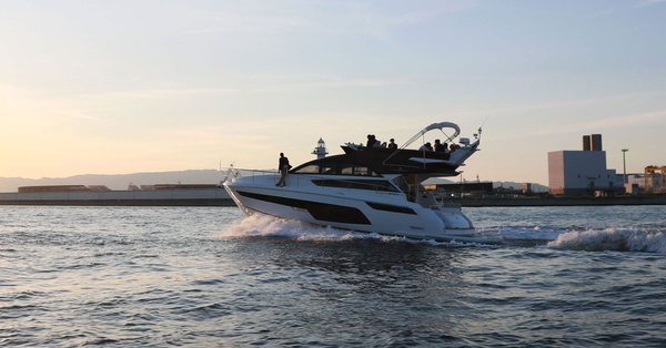 新しくなった大阪北港マリーナのクルーザー「フェアライン スコードロン50」。