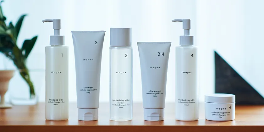 スキンケアはまず正しく“落とす”ことから始まります。「muqna」はお肌への負担を出来る限り少なくし、不足しがちな保湿成分(セラミドEOP、セラミドNP、セラミドAP、ヒアルロン酸Na、水溶性プロテオグリカン)を与えることで、肌のバリア機能※をサポートし、ゼロベースで『無垢な』素肌を取りもどすお手伝いをいたします。