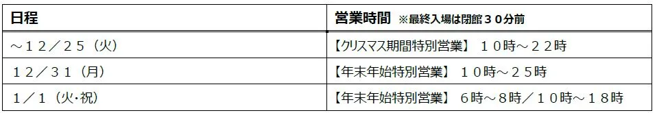 【営業時間】10時~25時(最終入場は閉館30分前)