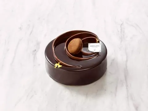 2018年のドゥバイヨルのクリスマスケーキは、濃厚なチョコレートムースとバニラビーンズの香り高いクレームブリュレのマリアージュを楽しめる『VOLTAIRE(ヴォルテール)』。芳醇なショコラの香り、クレームブリュレのとろけるような味わい、ライスクリスピ―の軽やかな食感という、贅沢かつ絶妙なバランスを堪能できるケーキに仕上げました。艶やかなダークグラサージュに、ショコラのリボンとショコラのマカロンをあしらったシックなデザイン。凛とした美しさと奥深い味わいで、大切な人と過ごす特別な時間を演出します。