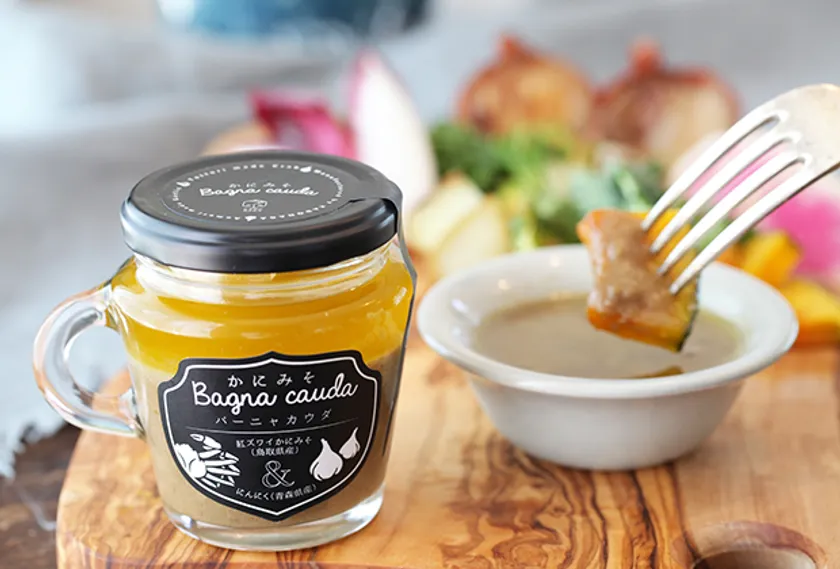 「かに専門業者」だから作れる、かにみそを贅沢に使ったリッチなバーニャカウダソースです。鳥取県境港市で長年にわたり、かにのあらゆる加工を行ってきた門永水産グループならではの逸品に仕上げました。地元の漁港に水揚げされる紅ずわいがには、10年近く脱皮を繰り返しながら深海に生息し、甲羅の中に濃厚なコクと甘みのある「かにみそ」を蓄えています。この「かにみそ」をもっと身近に、そして幅広い世代に味わっていただくために、このバーニャカウダソースを作りました。