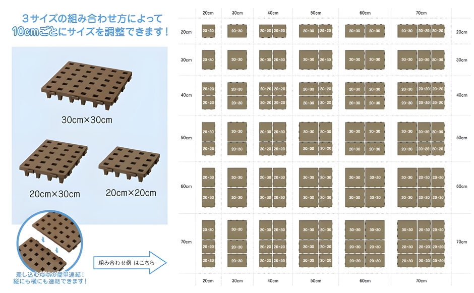 「20×20cm」「20×30cm」「20×30cm」の組み合わせでいろいろなサイズに!
