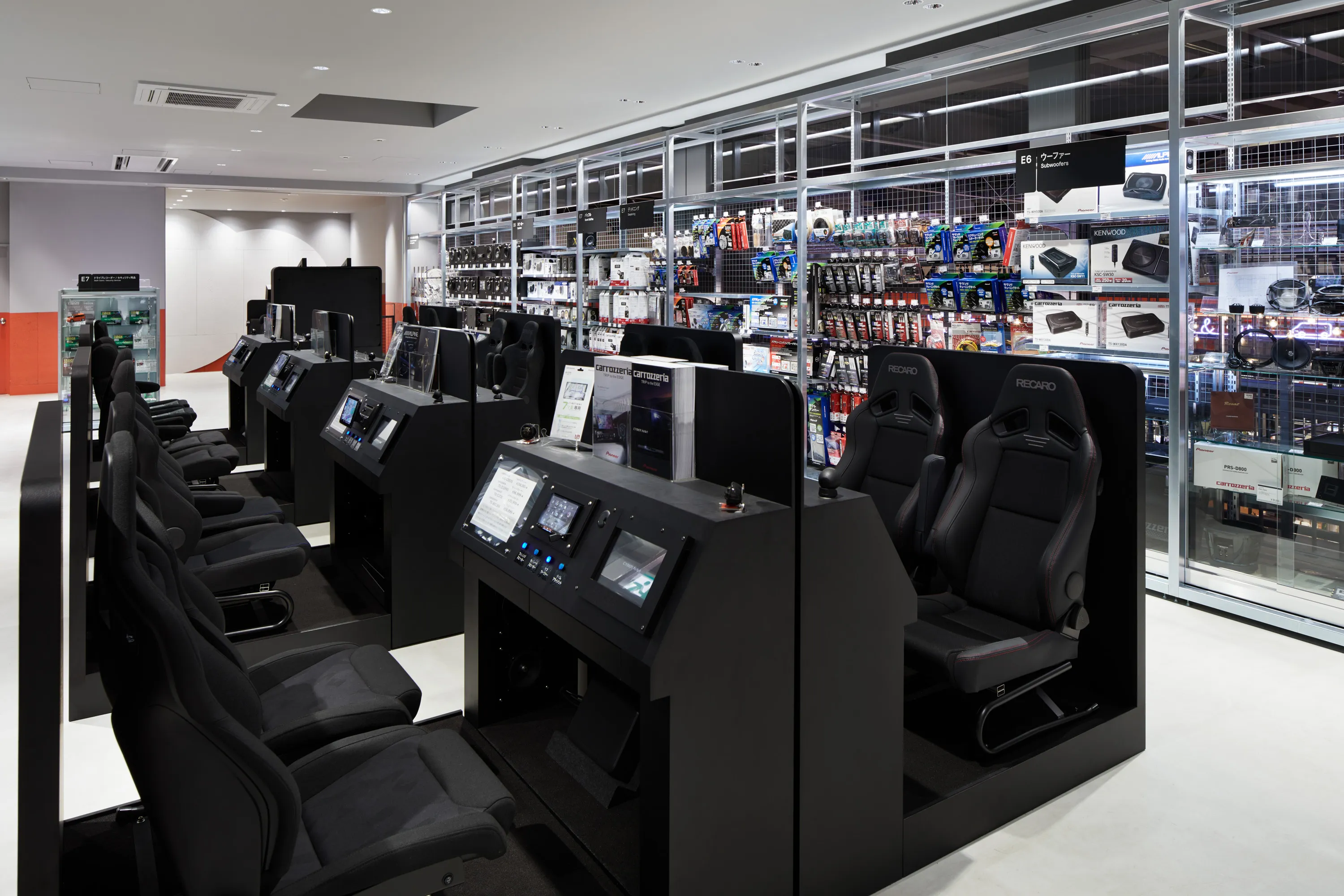 「Audio」では、クルマの運転席を模した着座方式のカーナビゲーションやスピーカーを視聴できる什器を採用し、実際の距離感でカーナビの操作やスピーカーの音を体感できます。