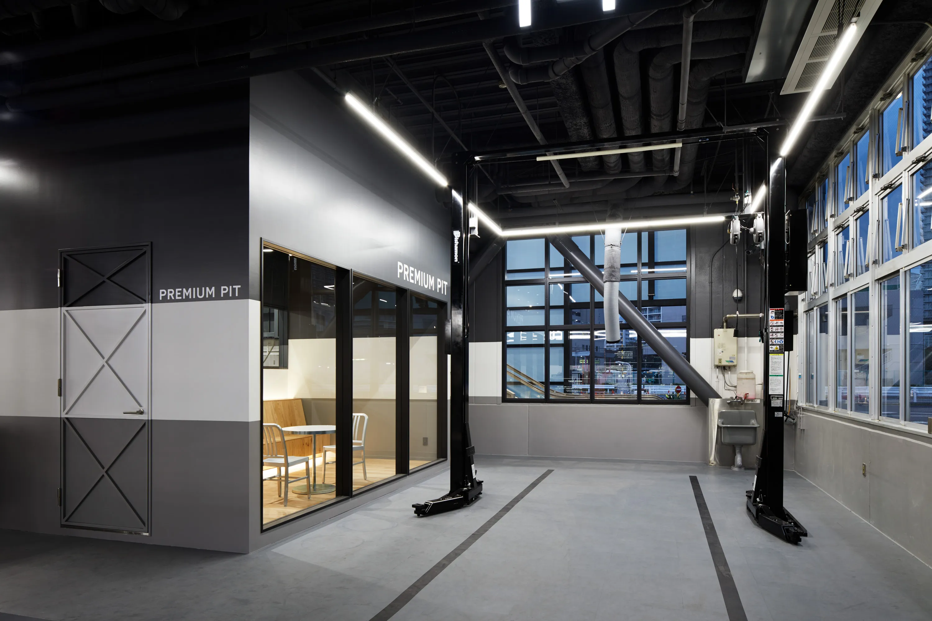 ピット全体を3色モノトーン(白、グレー系2色)ベースにカラーリングし、壁面什器や機材などが整理整頓された空間を保つことで、安心感や清潔感のあるピットとしました。ピットスタッフのユニフォーム(つなぎ)もA PIT専用のデザインに刷新し、背中に名前を入れることでスタッフのプロフェッショナル意識とお客様からの信頼感を高めます。