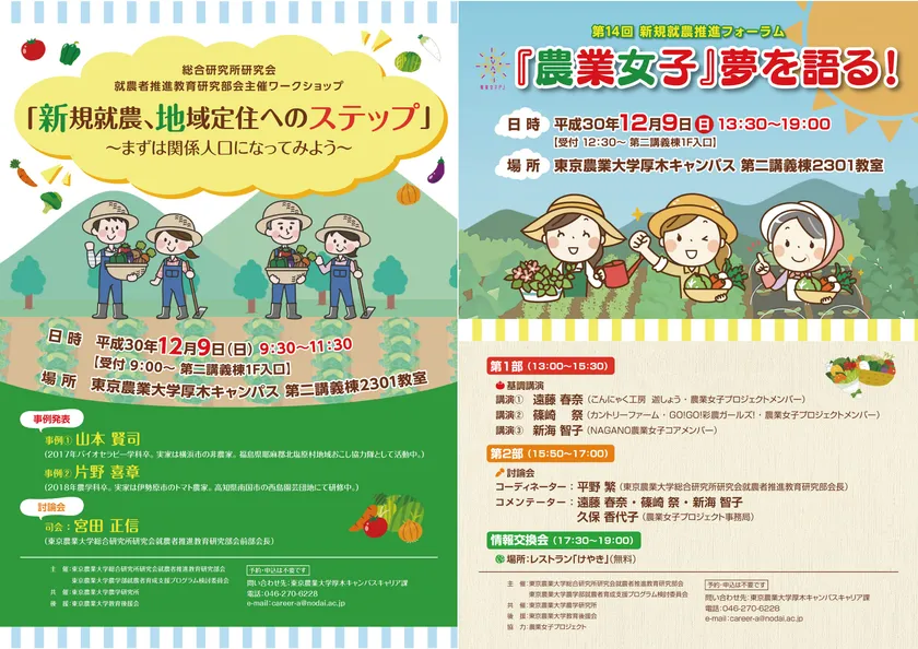 新規就農推進に関するワークショップ、フォーラムを 東京農大厚木キャンパスで12月9日に開催