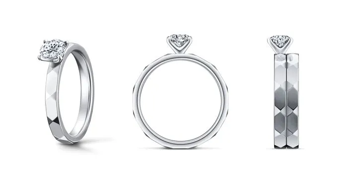 NYの新たなランドマークとして生まれる建築物にインスパイアされ、ダイヤモンドをイメージしたファセットを纏ったリングは、シャープでメリハリのある輝きを表現したデザイン。24面のファセットを全周に刻んだ、十二角形のデザインはエッジィでありながらなめらか、すべてにこだわり完成した逸品です。