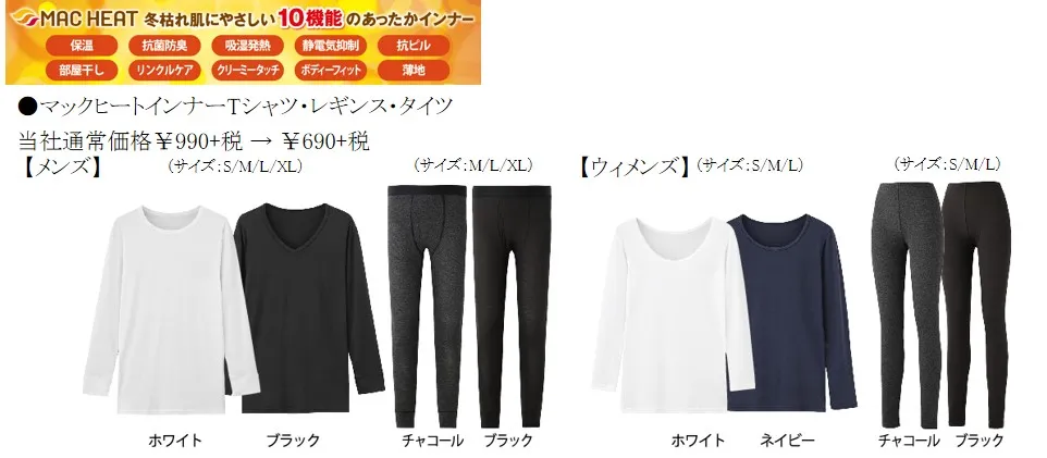 その他、暖かさが選べるマックヒートインナーやタッチパネル対応手袋など、冬に嬉しい機能商品も沢山ご用意しました。マックハウス創業29周年の感謝の5日間「SUPER特暖SALE」にぜひお越しください。