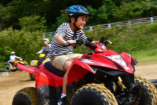 2人乗りバギー(タンデムバギー):同乗者4歳以上。運転は保護者に限ります(普通免許証所持者)
