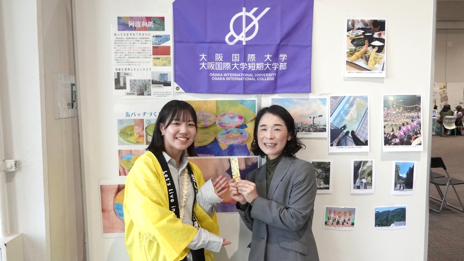 大阪国際大学(大阪府守口市、学長 宮本郁夫)の「すだちくんフレンズ」学生代表が、とくしま暮らしフェア移住相談会のワークショップにおける「講師」として招かれ、来場の方々に1300年の伝統が受け継がれる「阿波和紙」の魅力や暮らしの魅力をお伝えすると共に交流を深めました。また、徳島県関西本部 本部長の北川様から激励のお言葉をいただきました。
