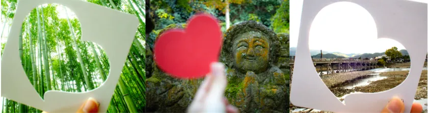 嵐山で出会った場所、心に残る時間、伝えたいメッセージなどをハートのフレームで切り取り、インスタグラムでシェア。初めて嵐山を訪れる人にも、何度も嵐山を訪ねているリピーターにも役立つ情報を「ななつの嵐山」でご提供していきます。