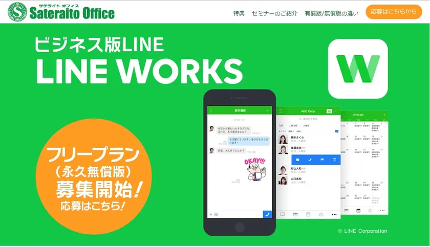 サテライトオフィス、ビジネス版LINE 「LINE WORKS」のフリープラン(永年無償版)の 申込受付を開始 先着1,000社限定で、日経BP社発行 「LINE WORKS 導入ガイド」をプレゼント