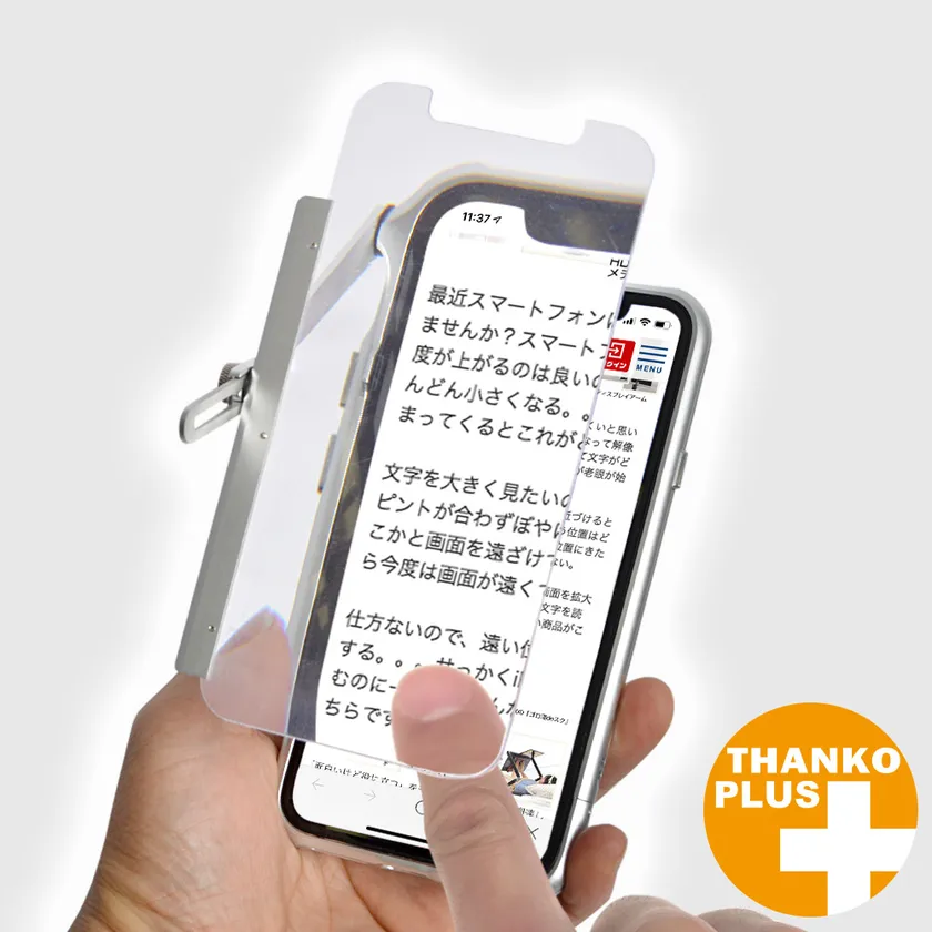 本製品はiPhone X/XSに取り付けて使用する拡大率約2倍のルーペ機能付きバンパーケースです。衝撃をやわらげるバンパーケースとして使用し、文字が見えづらい時などは表面のパネルを引き上げて、拡大率約2倍のルーペとして使用できます。上げ下げする位置によりお好みの拡大率で表示が可能。またタッチ操作もスムーズに行えます。使わない時はルーペがiPhoneの保護シートの役割をし、ルーペ越しにタッチ操作も行えます。iPhoneの画面が老眼で見えづらい。ピントが合わない。遠くに離すとピントは合うが文字が小さくて見えない。毎回ピンチアウト/イン操作をして拡大していた。そんな方にお勧めのルーペ機能付きバンパーケースです。