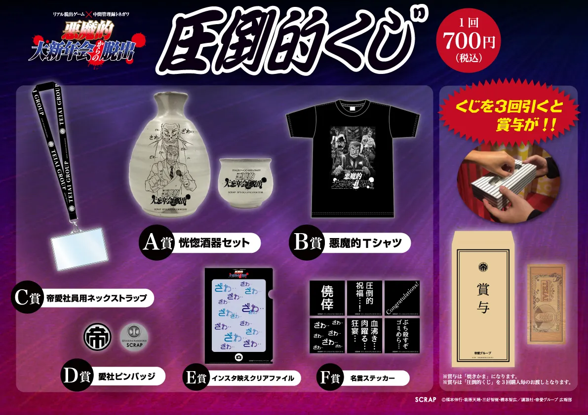 ・「圧倒的くじ」(賞品全6種):1回700円