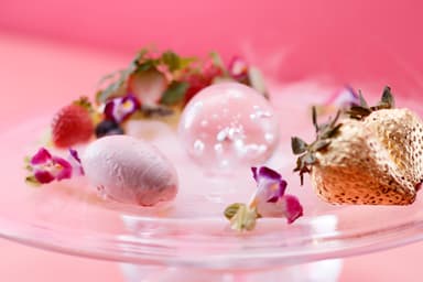 (輝くピンクの惑星をイメージ。アニスの香りをアクセントにした、甘酸っぱいいちごのムース)