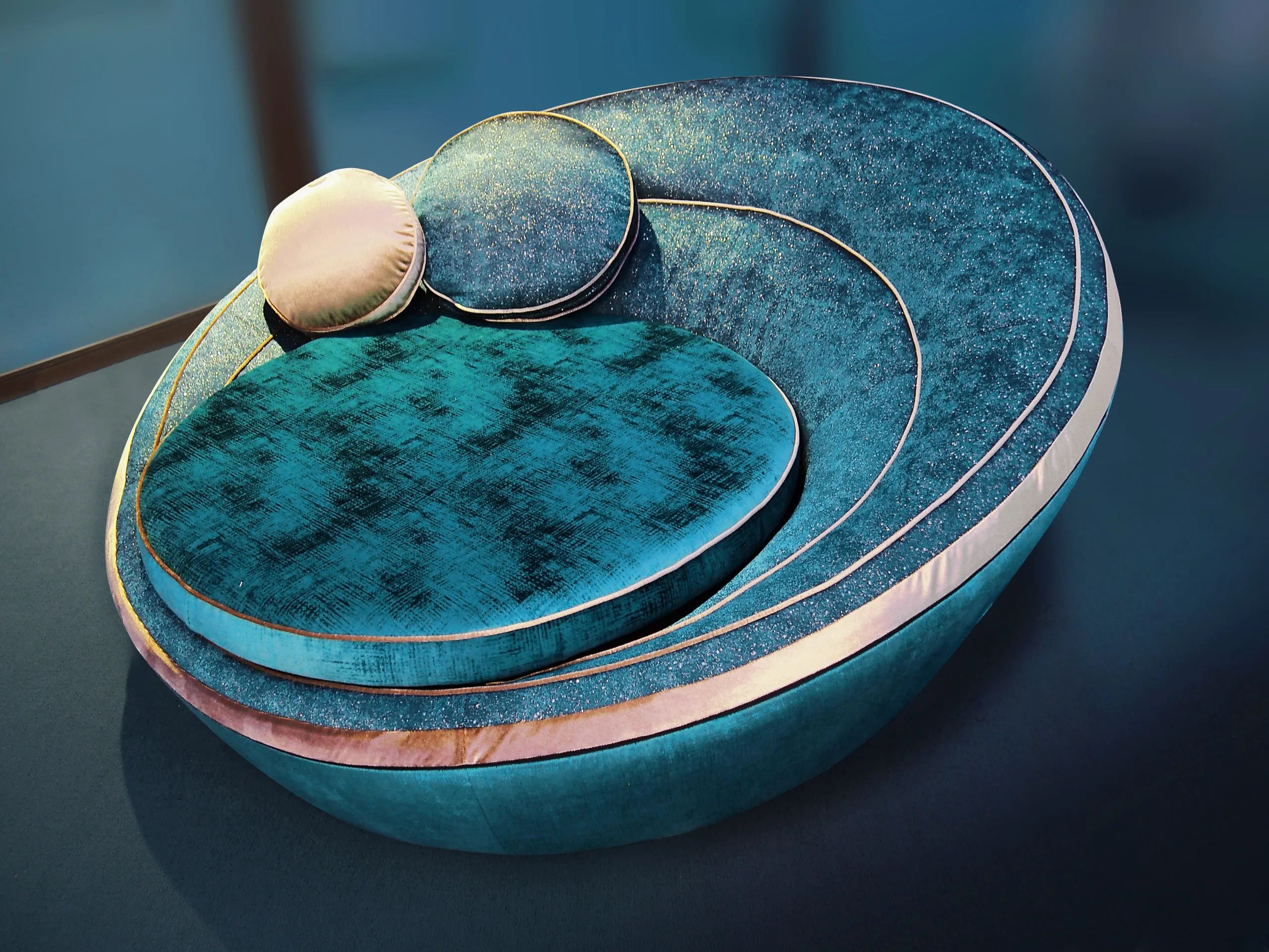 “きらめく銀河につつまれる新体験”をコンセプトに、プレミアム特注家具メーカーである株式会社ミネルバと共に、宇宙空間を漂うような座り心地を追求し制作しました。