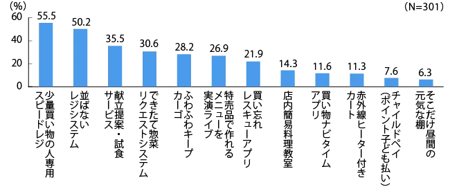 【図1】主婦が選ぶ流通の新サービスアイデア(複数回答 n=301)