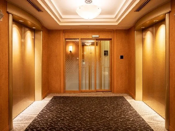スイートルームフロアのエレベーターホールにICカードキー対応の自動扉を新設。