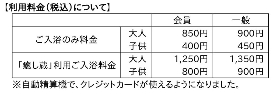 ■つかしん天然温泉「湯の華廊」利用料金(税込)について