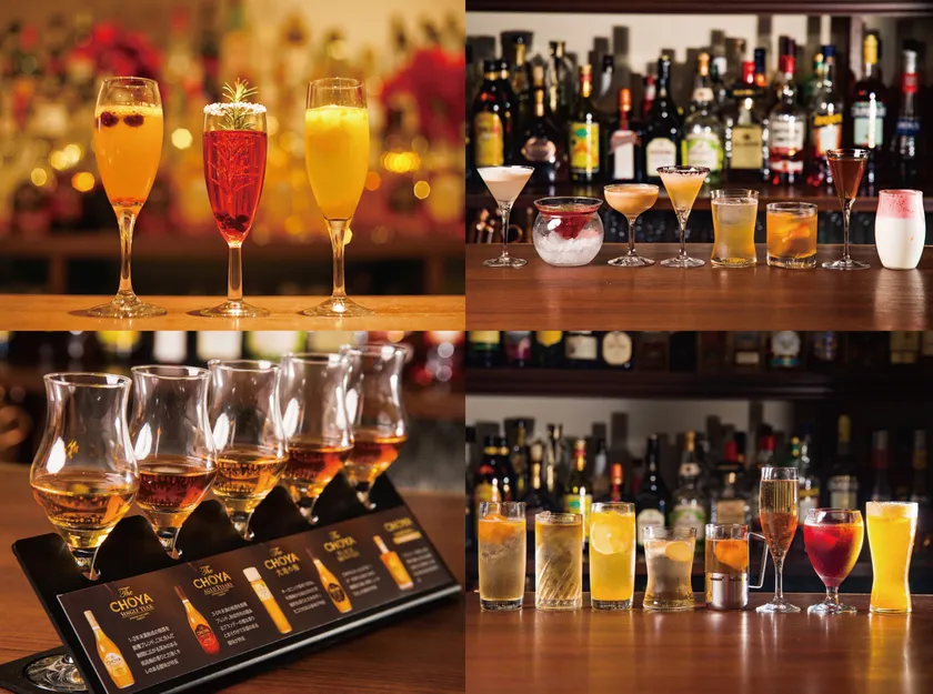 ハイボールやレモンサワーなど定番ドリンクを「The CHOYA」ベースでアレンジしたカクテル、「The CHOYA」とほうじ茶やサツマイモなど斬新な組み合わせやエスプーマの技術を用いた「MIXOLOGY(ミクソロジー)」カクテル、古くから世界で親しまれてきたクラシックカクテルを「The CHOYA」でツイストして生まれ変わらせた「WORLD STANDARD(ワールドスタンダード)」シリーズなど50種類以上のカクテル、「The CHOYA」の“質”を支える一般市場では出回ることのない熟度が高い特別な梅を使用したオリジナルフードやその他「The CHOYA」シリーズの利き梅酒が出来る、「The CHOYA フライト」やノンアルコールのモクテルなどもご用意しております。
