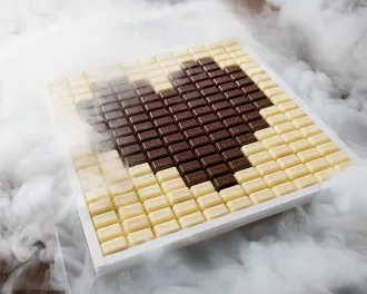 「ダース<ビター>」と「白いダース」を液体窒素の煙の中で冷たく仕上げるパフォーマンス