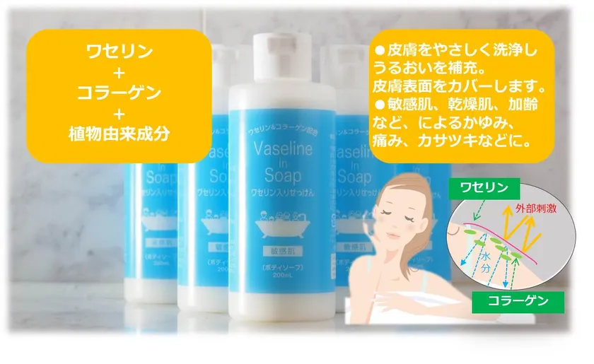 ワセリン&コラーゲン入りの低刺激処方ボディソープ登場! 「皮脂膜」キープで乾燥肌・敏感肌でも安心して使える